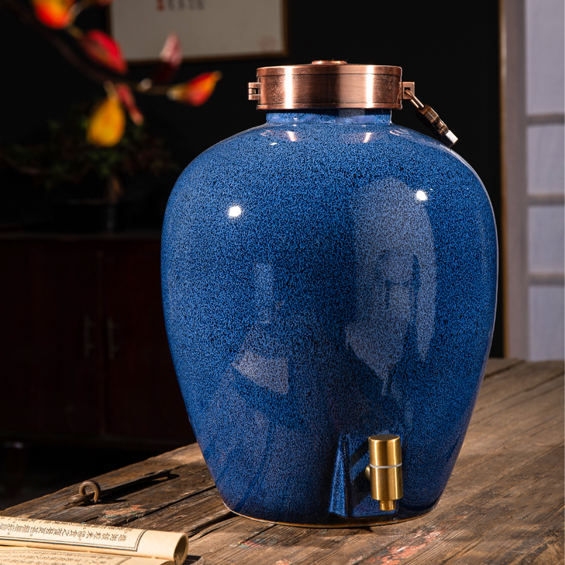 景德鎮陶瓷酒壇子家用密封10斤20斤30斤50斤裝酒缸帶龍頭酒瓶泡酒