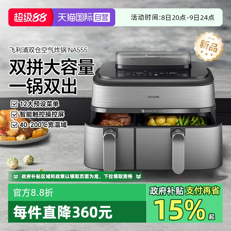 【自營】飛利浦空氣炸鍋烹飪機新款家用NA555雙倉蒸炸兩用大容量