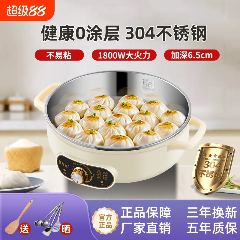 304不銹鋼電餅鐺多功能家用加深加大烙餅炒煮電煎鍋平底鍋當家