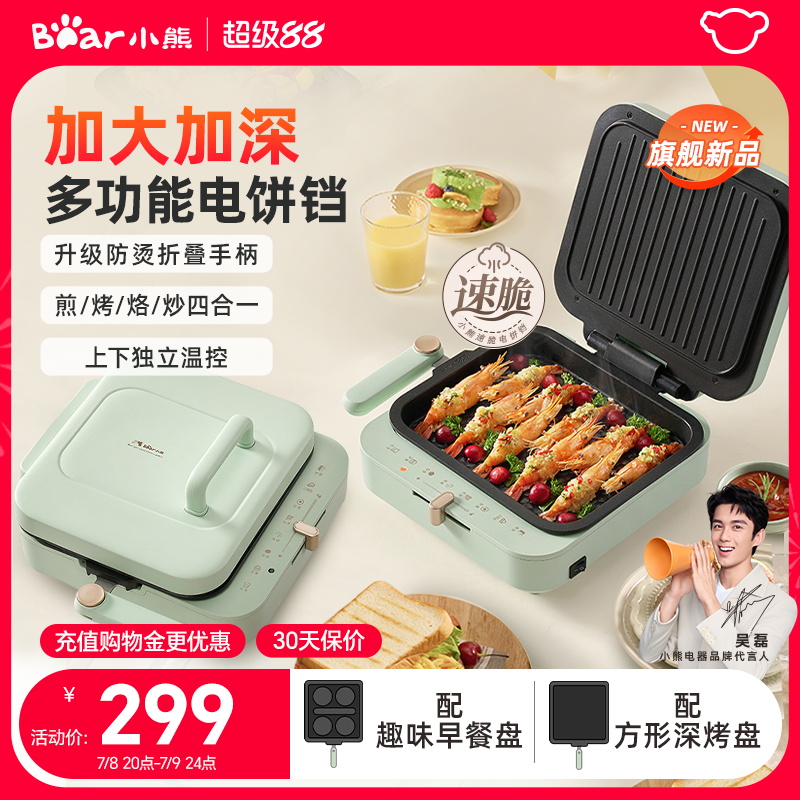 小熊電餅鐺家用雙面加熱煎餅機烙餅鍋加深加大新款官方正品烹飪機