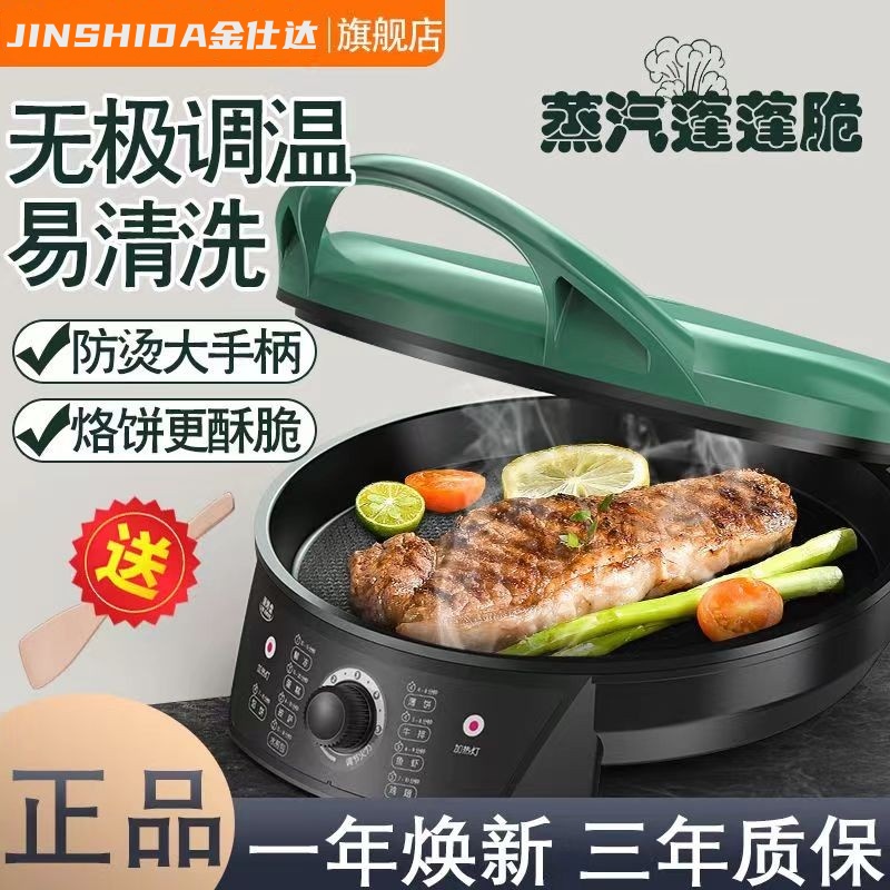 江小廚304不銹鋼電餅鐺多功能電煎鍋無涂層家用加深加大電烙餅鍋