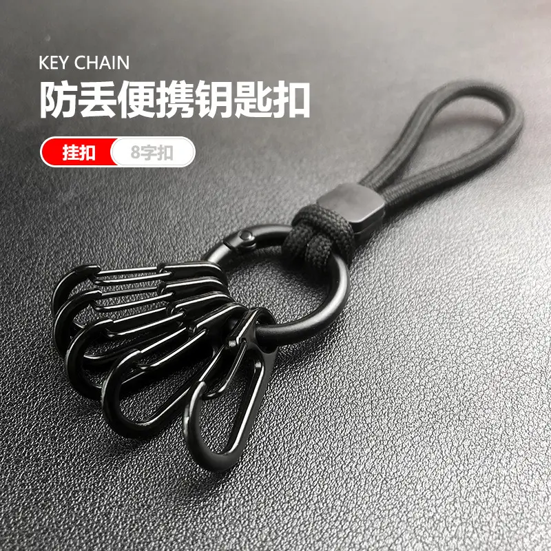 原創小眾高級感黑色金屬8字扣鑰匙扣掛件多用途鎖匙扣鑰匙繩掛扣