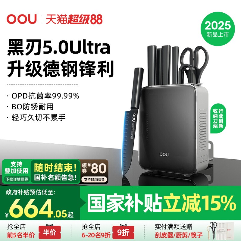OOU黑刃五代系列組合菜刀家用廚具全套切菜刀水果刀德國鋼材廚刀