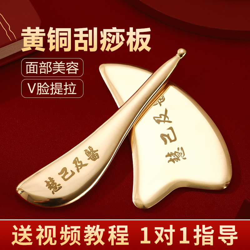 慧己黃銅面部美容刮痧板法令紋臉部提拉小海豚刮臉板四合一撥筋棒