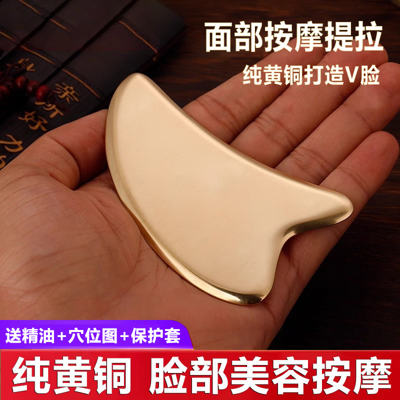 純黃銅刮痧板銅制面部按摩板臉部頸部淋巴家用愛心小海豚按摩板