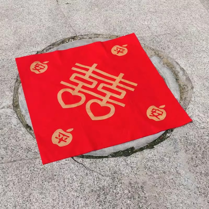 結婚壓井蓋紅紙貼井蓋布喜字無紡布紅布婚禮專用布置裝飾婚慶用品