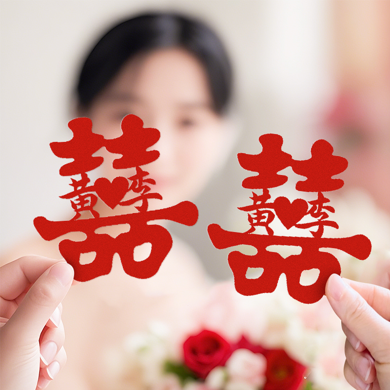結婚旅拍手拿喜字姓氏定制名字婚房裝飾領證訂婚小喜字拍照道具