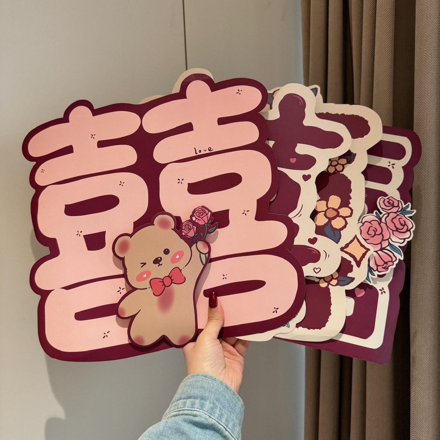 不干膠結婚小喜字貼紙創意婚禮嫁妝柜門樓梯貼裝飾喜字家具貼喜字