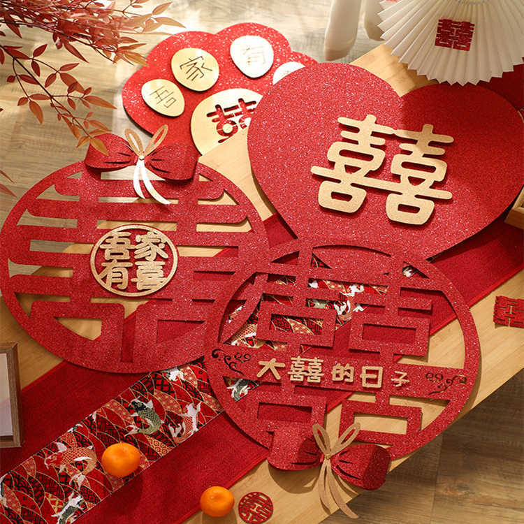 中式結婚專用喜字貼婚房布置臥室客廳背景墻裝飾囍字剪紙窗戶門貼