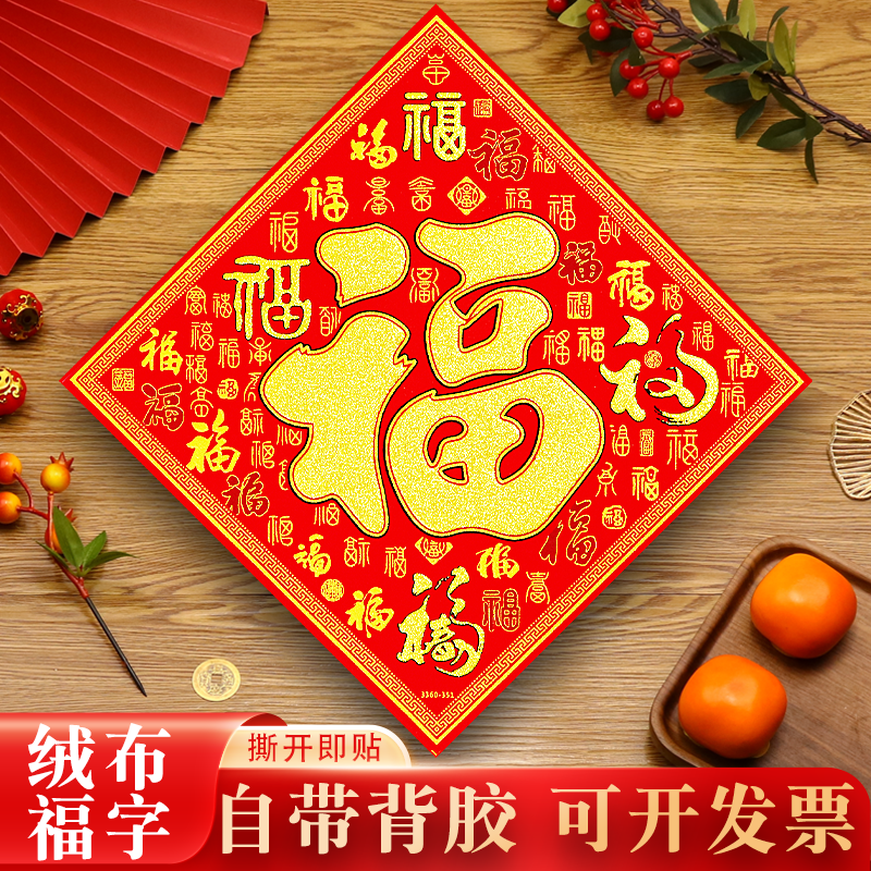 2025蛇新年絨布福字大門貼過年春節斗方裝飾背膠燙金自粘墻窗貼紙