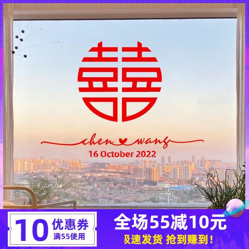 定制結婚名字姓氏日期玻璃窗花貼創意個性男女方婚房裝飾喜字貼紙
