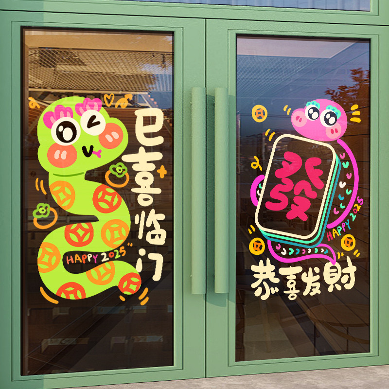 2025開門紅貼紙新年裝飾職場布置保險公司門貼福字發字靜電玻璃貼