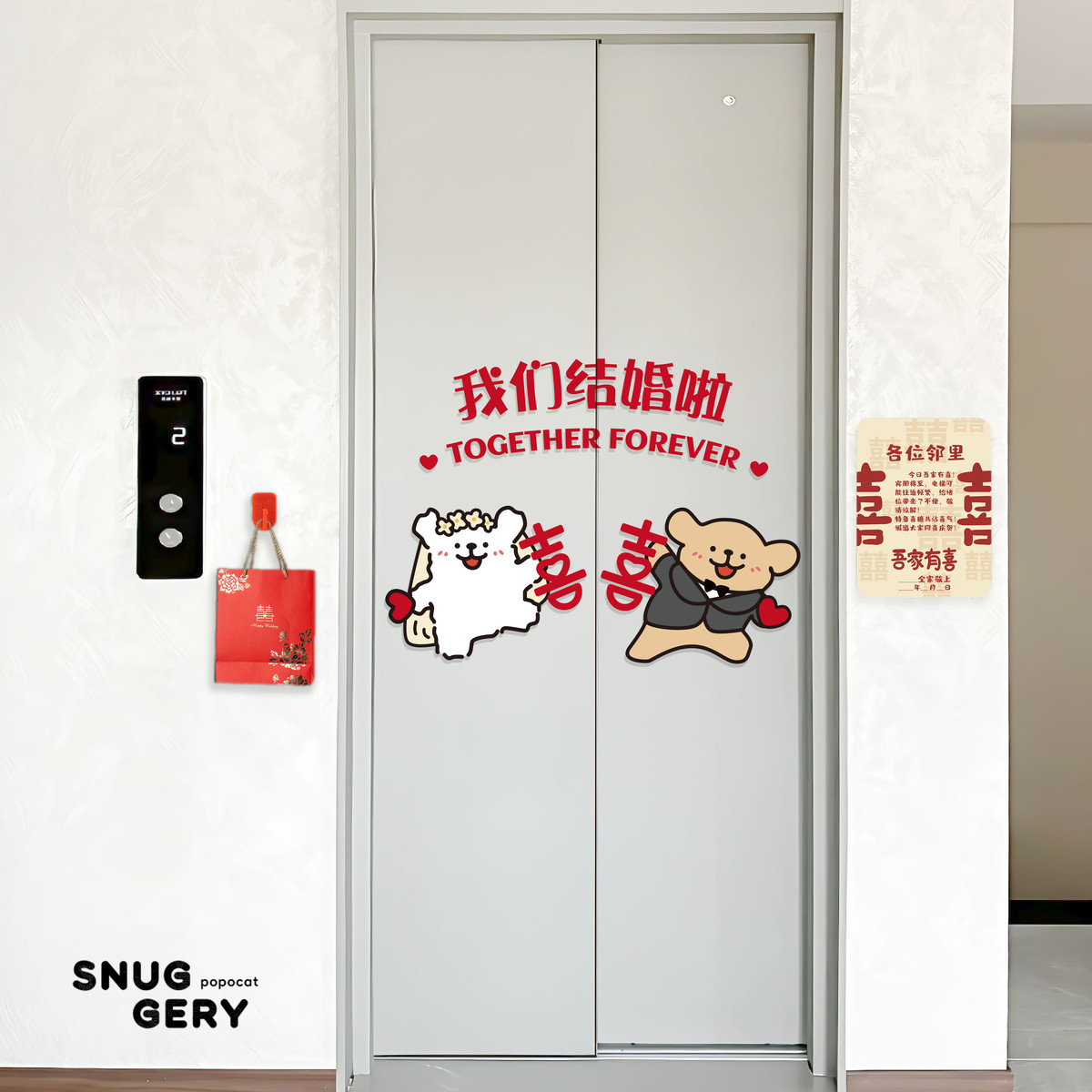 喜慶小狗婚房布置喜字結婚專用一梯一戶電梯貼紙高級感電梯喜字貼