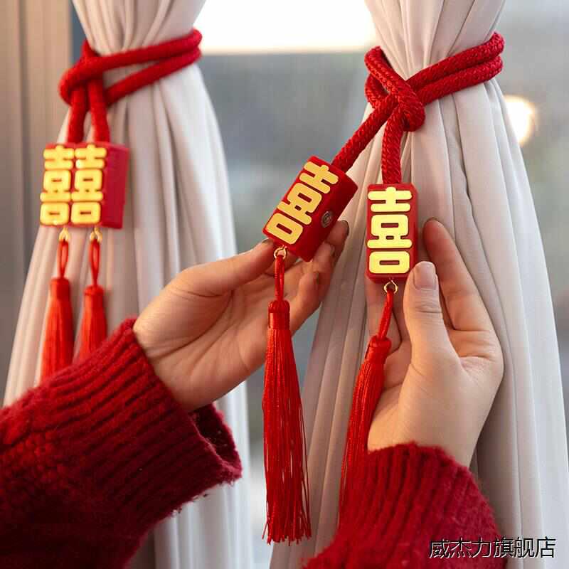 結婚窗簾綁帶裝飾婚房布置套裝婚禮男女方新房喜字掛飾蝴蝶結拉花