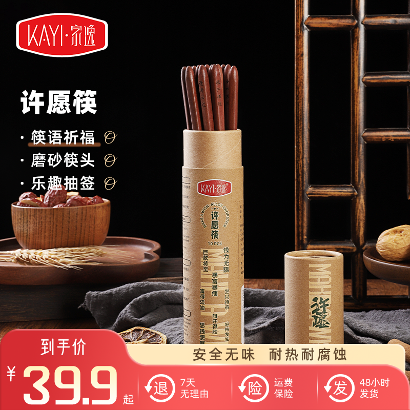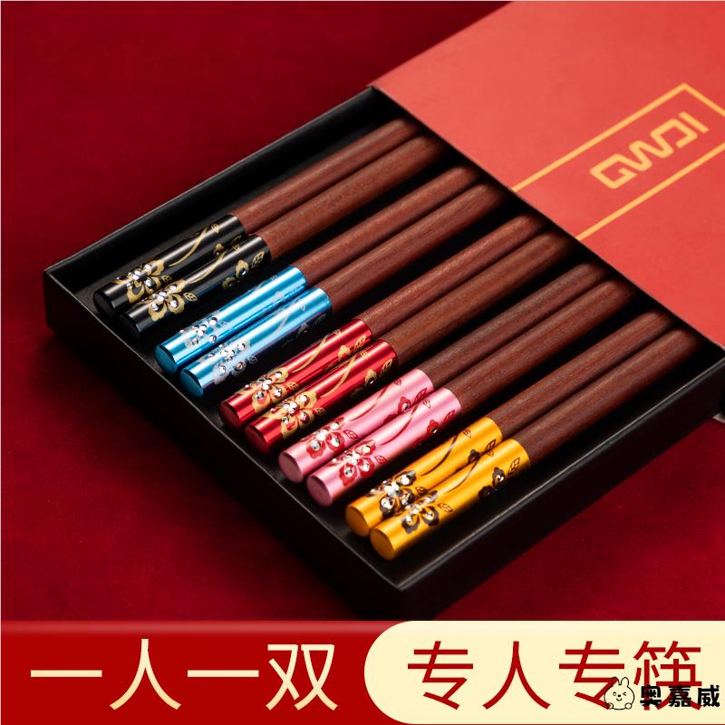 家逸檀木筷子家用高檔防滑防霉耐高溫紅檀木筷子合金許愿筷子