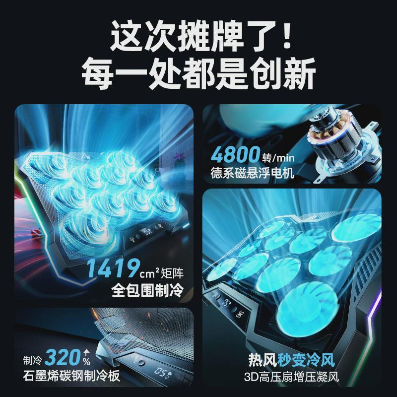 熱銷銳塔克新款超靜音RGB燈可升降10核便攜筆記本電腦散熱器支架
