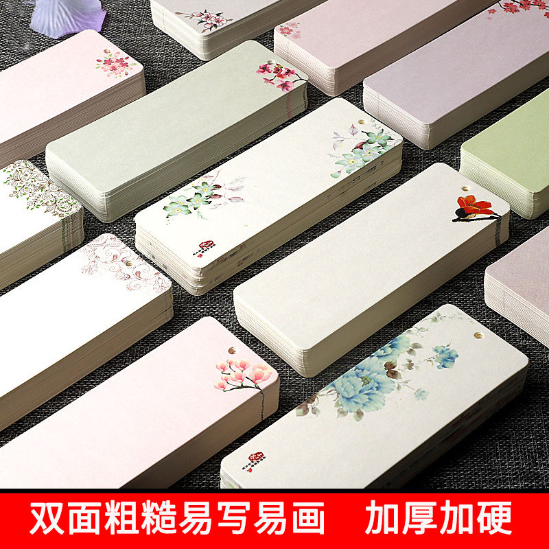 空白花朵有圖案的書簽自寫學生打孔流蘇硬卡紙手繪自制卡片14*5cm