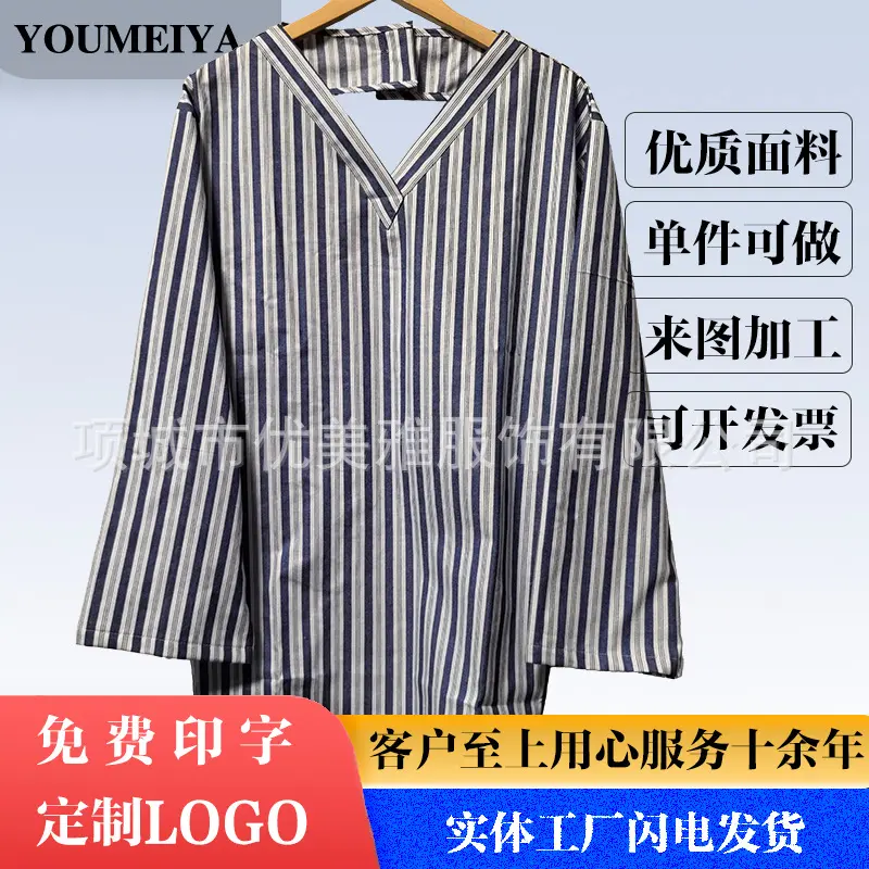 棉ICU氣切v領露背病號服反穿系帶長袍體檢服臥床患者護理服實驗服