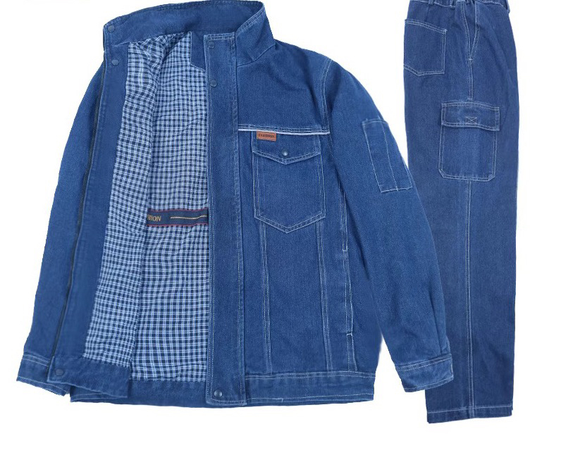 雙層全棉牛仔工作服套裝男電工勞保服加厚立領電焊工服防燙耐磨