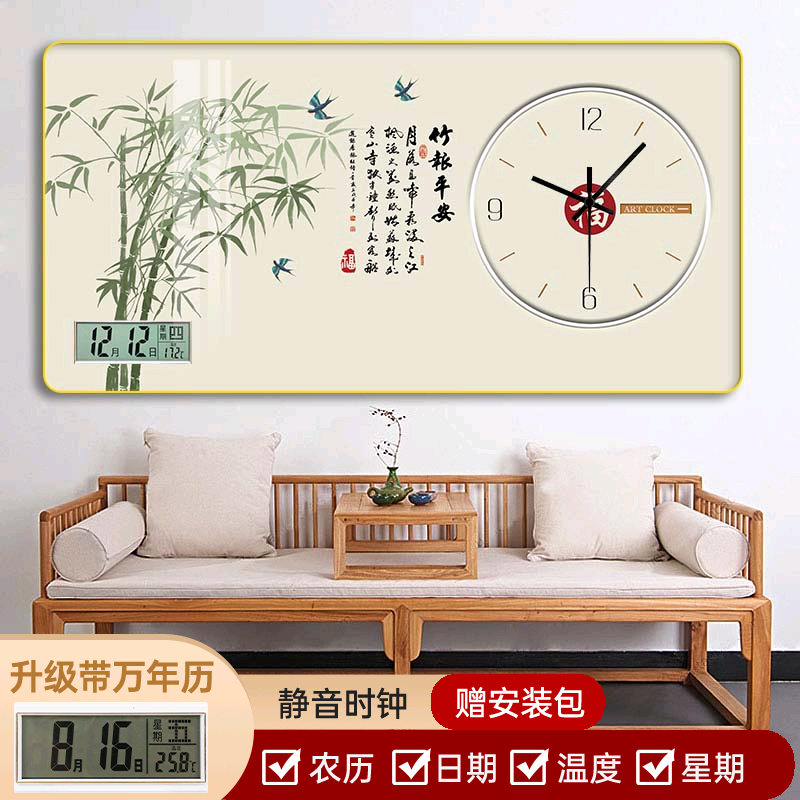 精梭新款簡約萬年歷裝飾掛鐘新中式輕奢客廳裝飾畫鐘背景墻畫鐘表