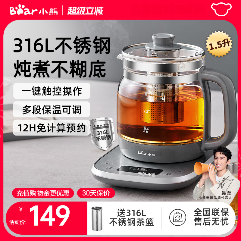 小熊養生壺多功能316L不銹鋼辦公室全自動泡煮茶器花茶燒水壺