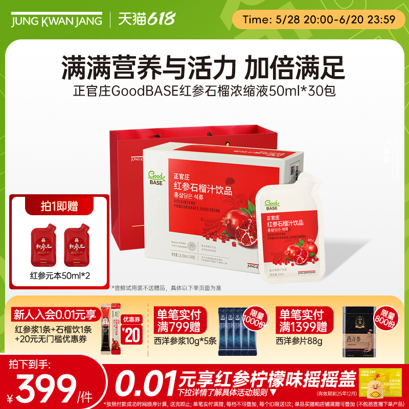 正官莊韓國高麗參伊朗紅石榴飲紅參石榴濃縮液禮盒30袋現貨