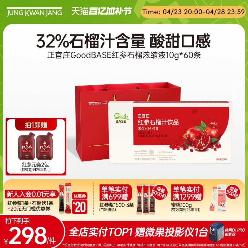 【明星同款】韓國正官莊紅參石榴汁飲品大容量600g禮盒裝送禮