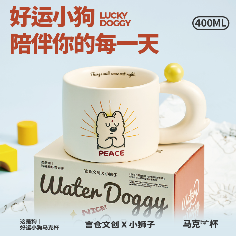 言倉好運小狗馬克杯禮盒咖啡家用陶瓷水杯女生兒童情侶生日禮物