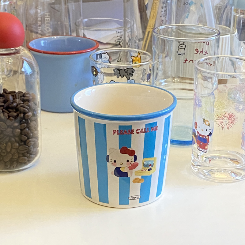 鹿姆比 卡通陶瓷馬克杯可愛藍色條紋喝水杯子小眾簡約復古咖啡杯