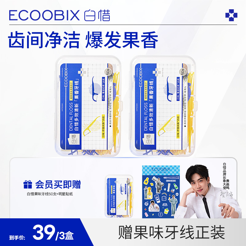 白惜多效清新果香牙線超細單獨盒裝隨身便攜家庭裝一次性50支/盒