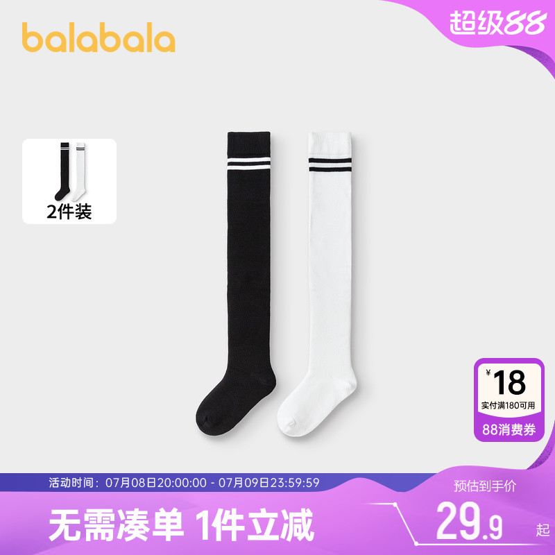 巴拉巴拉兒童長筒襪高筒白色學生足球過膝襪春秋男童女童中筒襪子