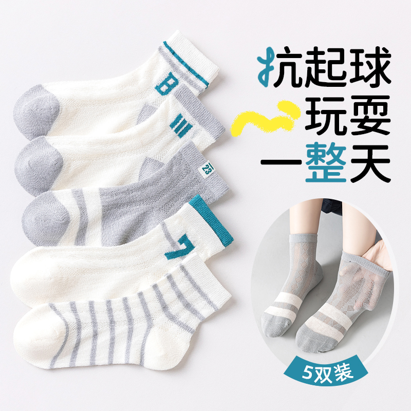 全純棉時代兒童襪子男童夏季薄款純棉透氣網眼襪男寶寶男孩夏天童