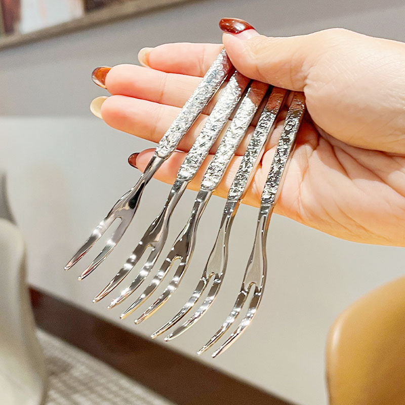 304不銹鋼水果叉子輕奢高級感水果簽餐廳蛋糕甜品叉子創意月餅叉