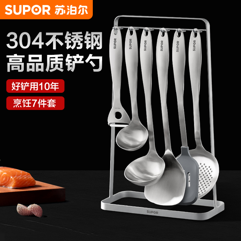 蘇泊爾鍋鏟套裝304不銹鋼鏟勺湯勺炒菜鏟子廚具套裝七件套