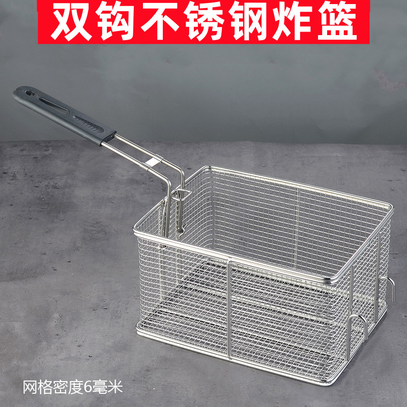 好質量雙鉤商用炸網炸爐11L不銹鋼炸框8L方形雙鉤炸篩濾6l油炸藍