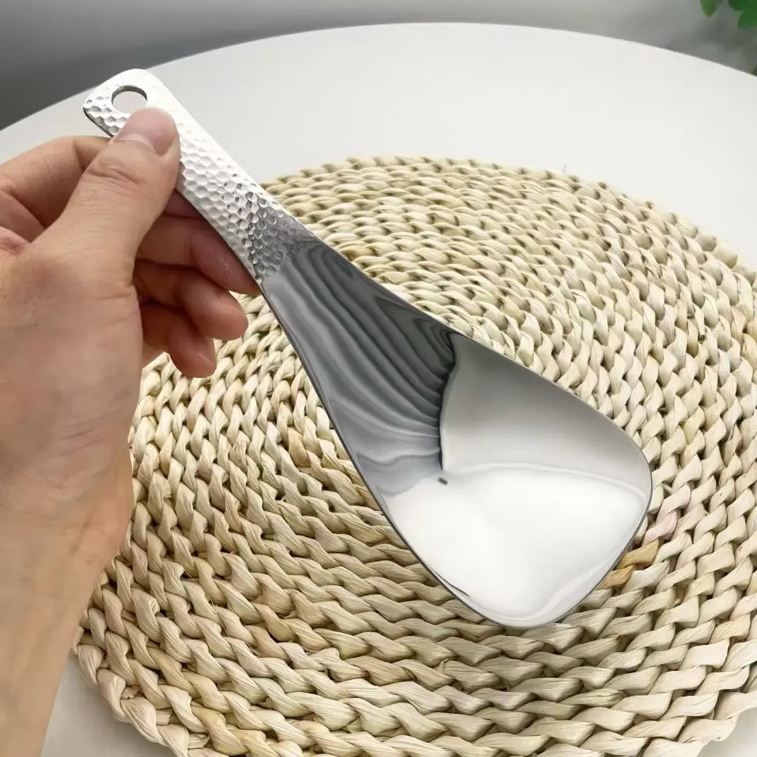 不銹鋼錘紋飯勺不粘飯鏟加厚防菌超輕便攜防粘家用舀飯大勺子