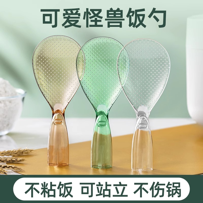 不粘米飯勺飯勺打飯勺高顏色透明飯勺子新款可愛小怪獸飯勺站立式