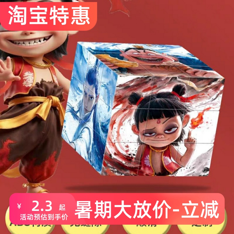 新款哪吒之魔童鬧海三階魔方學生創意高顏值拼圖兒童益智解壓玩具