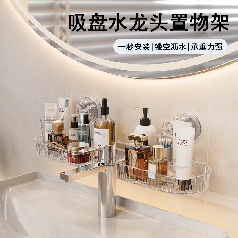 水波紋吸盤置物架衛生間壁掛式免打孔浴室洗手臺洗漱臺用品收納架