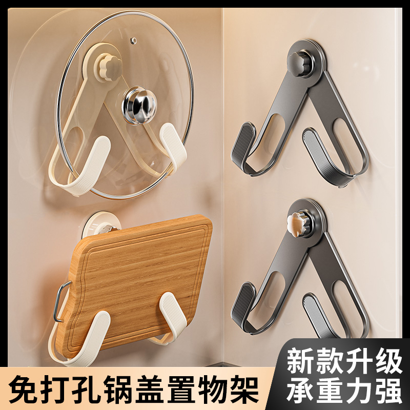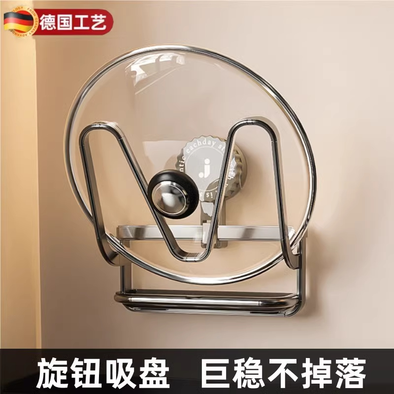 德國吸盤鍋蓋架旋鈕鍋蓋放置器壁掛式免打孔多功能功砧板放置器新