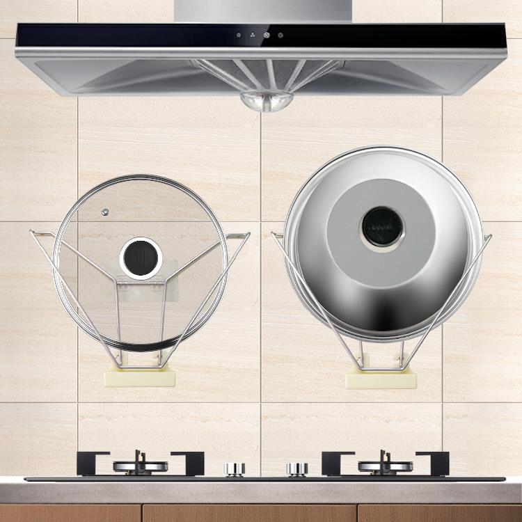 炒菜鍋蓋架304不銹鋼壁掛式免打孔帶接水盤神器廚房置物收納架