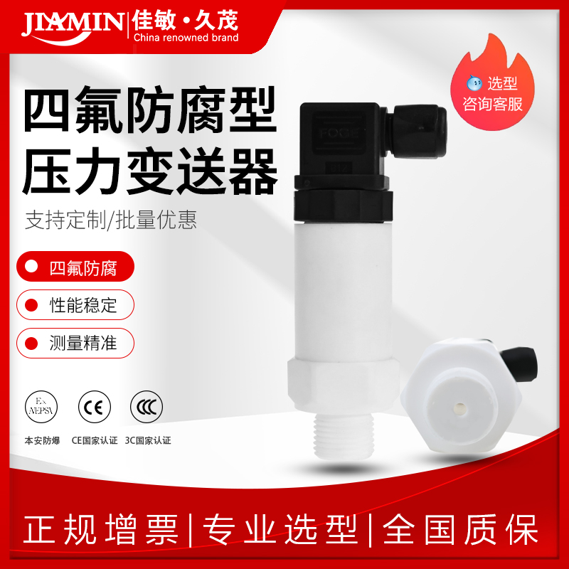 佳敏久茂四氟防腐型壓力變送器耐濃酸堿壓力傳感器4-20ma傳感器