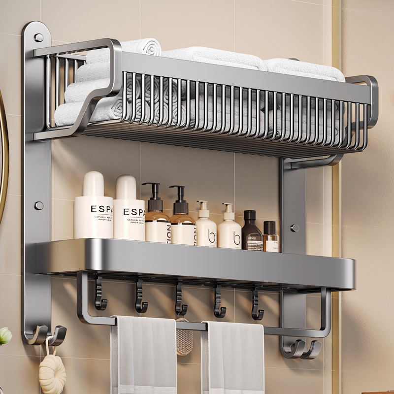 槍灰毛巾架免打孔浴巾架衛生間壁掛式廁所洗手間五金衛浴掛件套裝