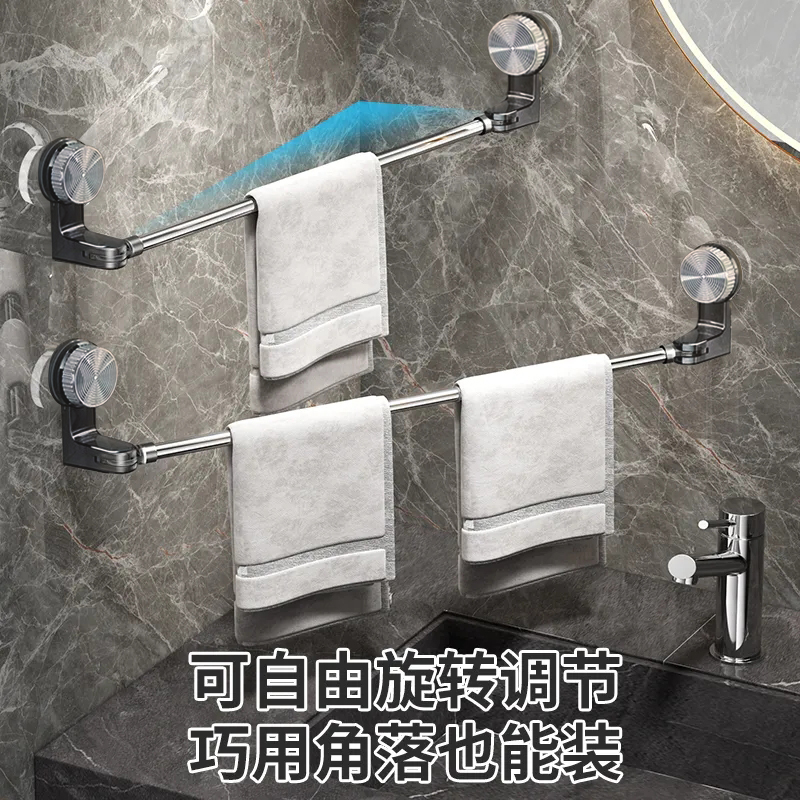 浴室免打孔毛巾架衛生間不銹鋼可伸縮旋轉吸盤毛巾掛桿單桿置物架