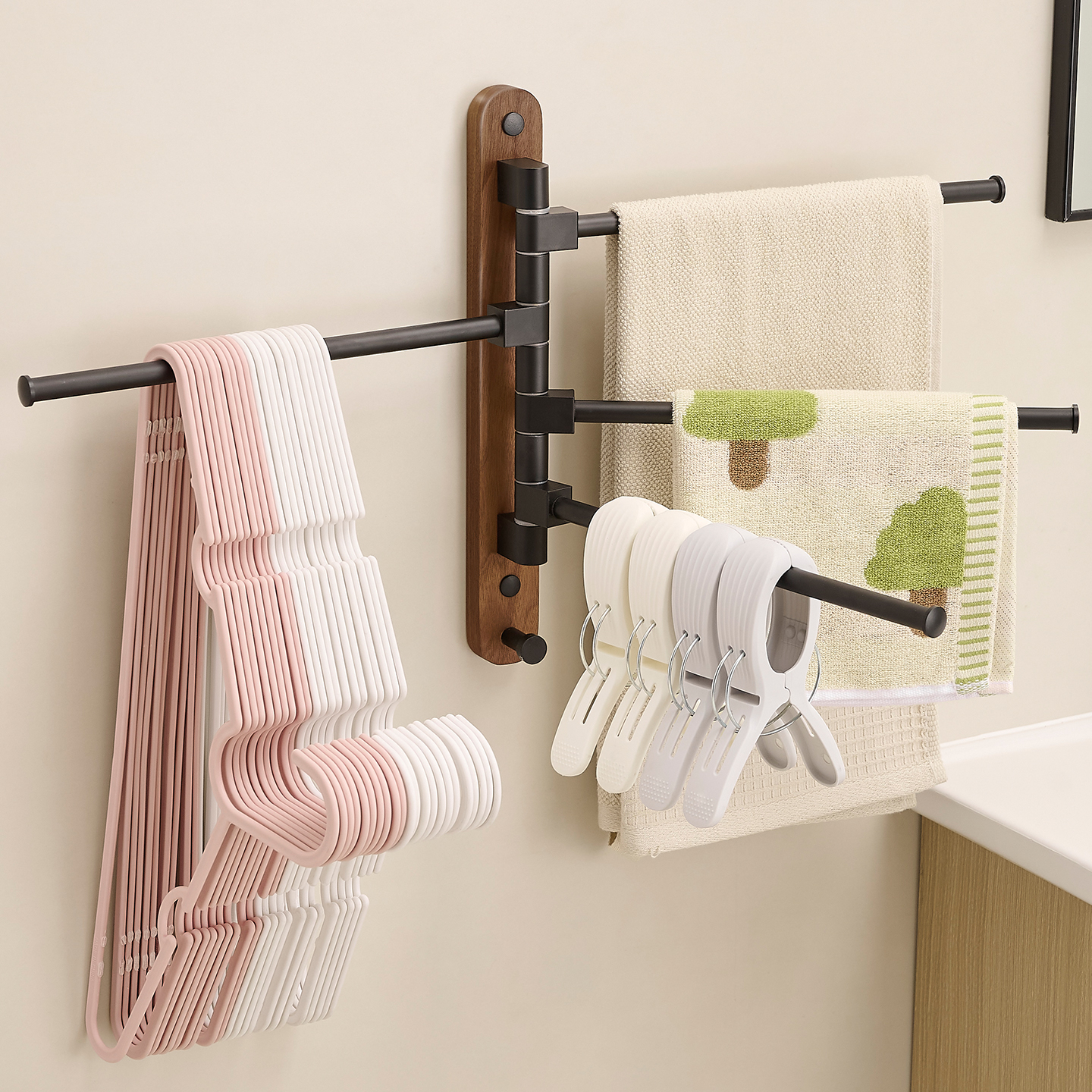 實木旋轉毛巾架免打孔衛生間架子掛架毛巾桿浴室神器掛毛巾置物架