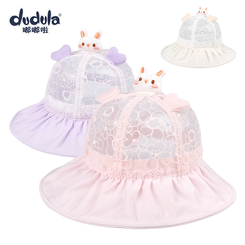 嘟嘟啦夏季公主帽卡通蕾絲網帽防曬女寶寶遮陽帽大檐嬰幼兒童帽子