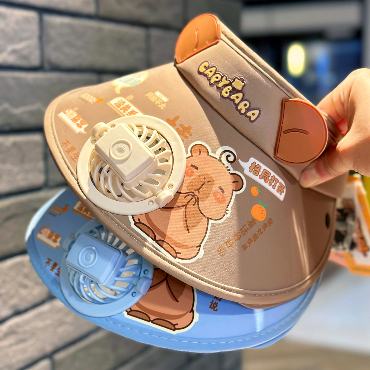 男女童大帽檐風扇帽夏季防曬帽遮太陽小孩中學生卡皮巴拉男孩女寶