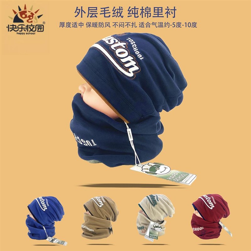 兒童百搭堆堆帽脖套二件套v男童純棉里襯套頭帽圍脖套裝大童大碼