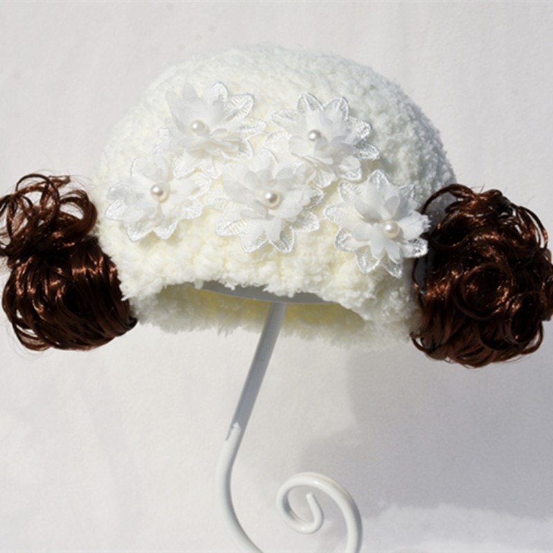 嬰兒秋冬假發帽子女寶寶公主蕾絲花朵帽女童加厚保暖Y帽子圍脖套