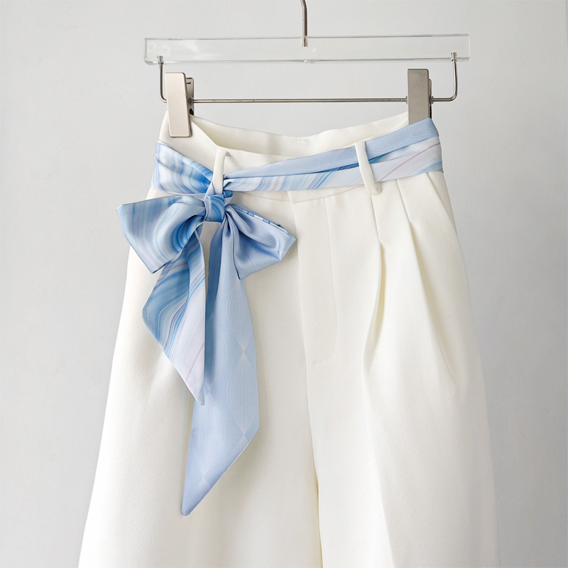 淺藍色長條絲巾腰帶女2025新款系脖高級感搭配裙子牛仔褲腰間飄帶